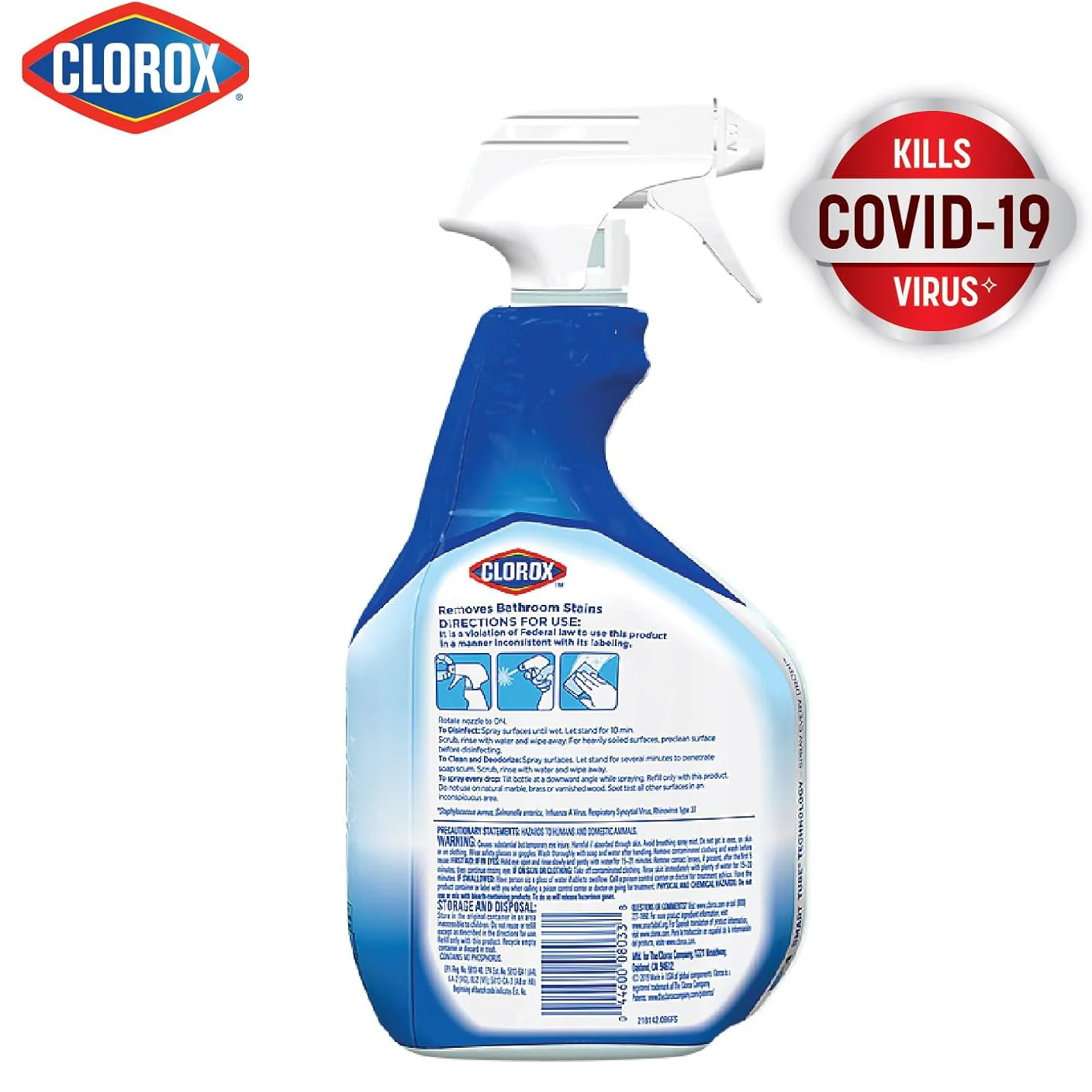 Clorox Disinfecting Bathroom Cleaner delivers powerful hospital-grade sanitation to your home or commercial space. This 30 oz spray effectively removes soap scum, grime, and 99.9% of bacteria and viruses commonly found in bathrooms, all without the harsh bleach scent.